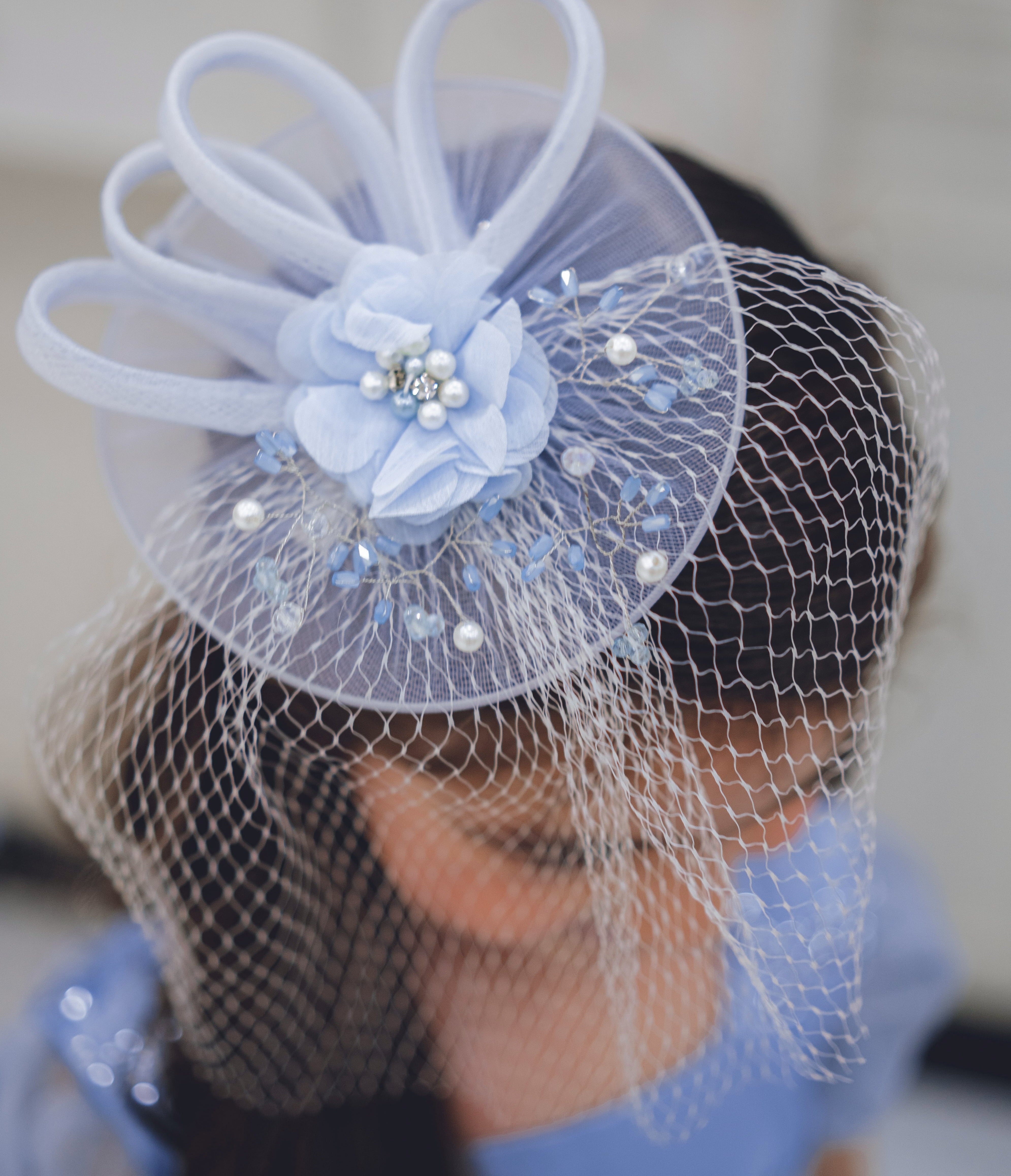 Felicia headpiece features beaded headpiece fused with mesh veil!