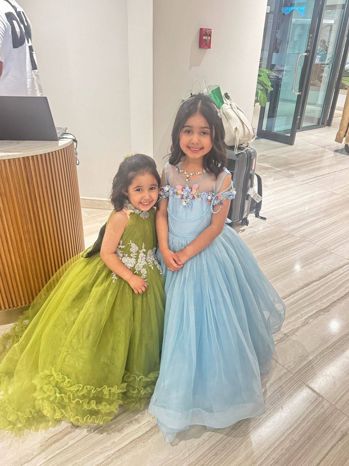 Featuring a Multi Tiered Floral Tail Strutcured With Ruffle Hem Petals and Our Signature Curls Adorned With Glitter Fabric Used Silk Net Glitter