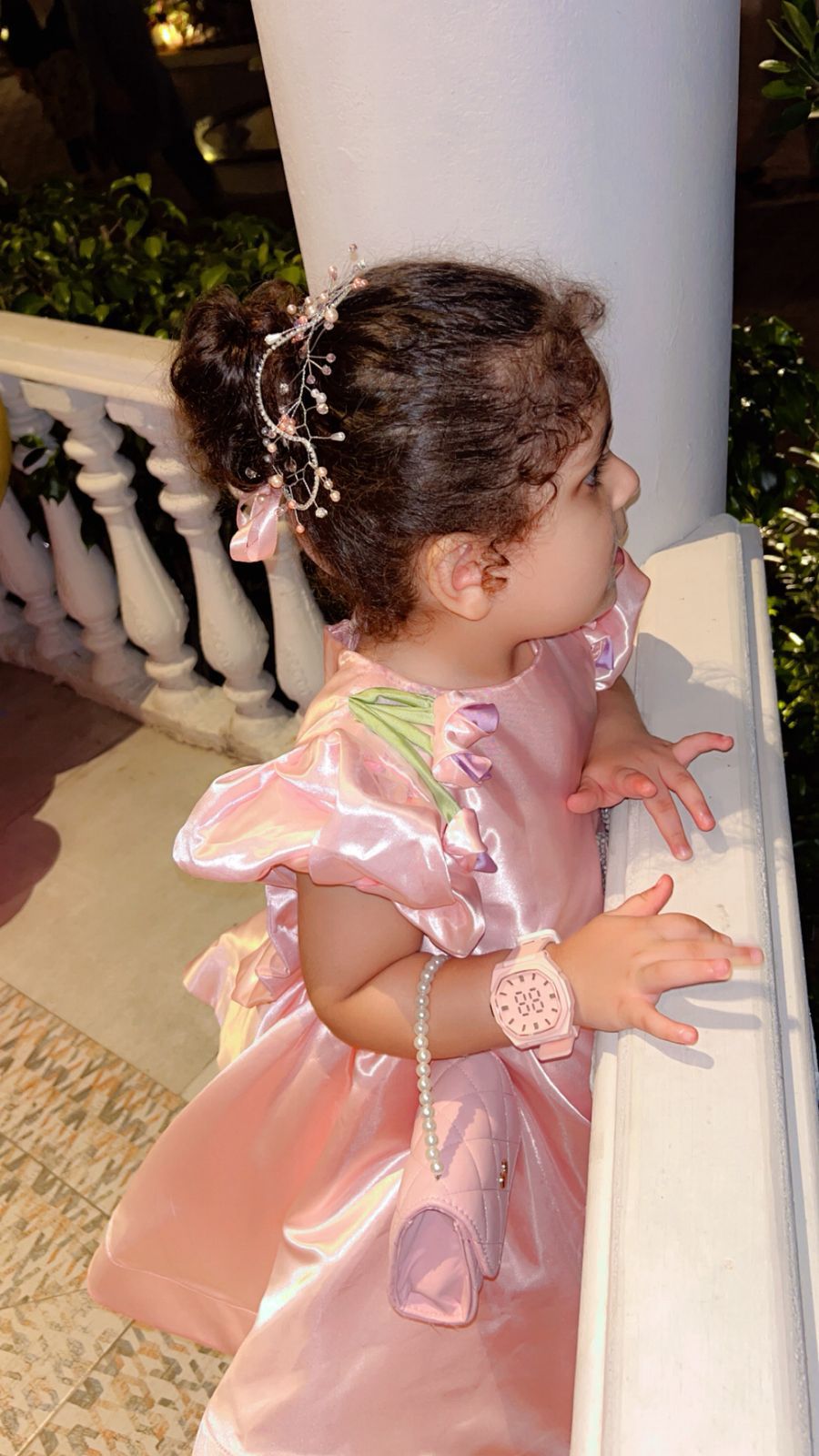 Satin silk frock in pale pink colour in our signature flowy silhouette adorned with handmade lillies.